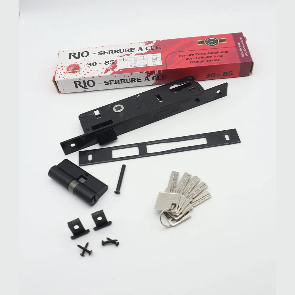 La Serrure RIO – À Clé est une serrure fiable conçue pour les portes en aluminium. Dotée d’un cylindre à clé de 70 mm (30 + 40) et livrée avec plusieurs clés, elle offre un niveau de sécurité élevé. Idéale pour les portes d'entrée, bureaux ou locaux nécessitant une fermeture sécurisée.